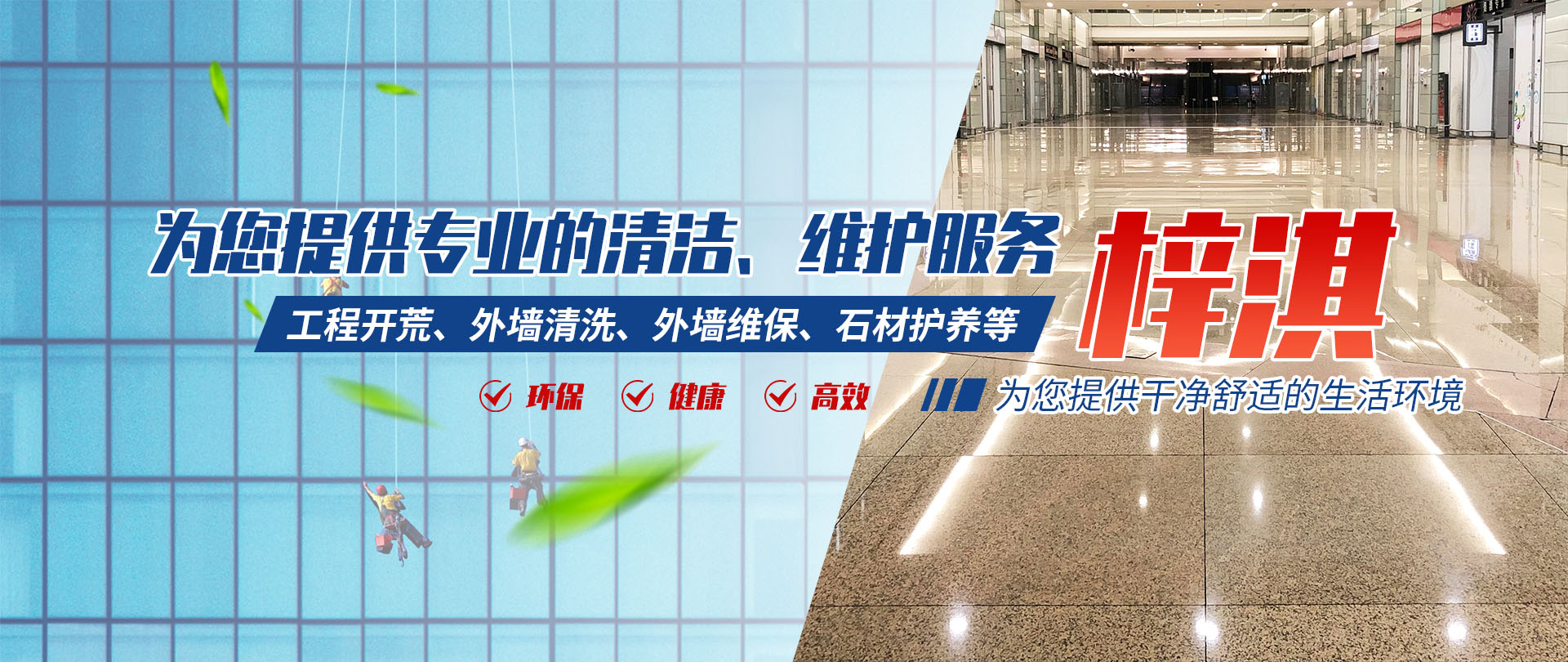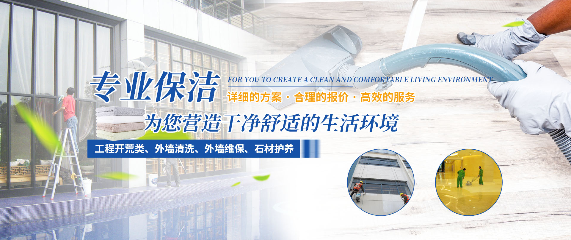 四川梓淇清潔服務(wù)有限公司,是一家從事物業(yè)管理,外墻清洗,外墻維保,綜合類開荒保潔企業(yè)公司。   專業(yè)從事物業(yè)管理、工程開荒類、外墻清洗、外墻維保、石材護(hù)養(yǎng)服務(wù)。公司有正規(guī)培訓(xùn)、擁有專業(yè)的保潔隊(duì)伍;齊全的清潔設(shè)備;規(guī)范的作業(yè)流程;主動(dòng)的服務(wù)意識(shí)。   秉承“環(huán)保、健康、科技、創(chuàng)新、專業(yè)”的服務(wù)理念,為您提供詳細(xì)的施工方案,合理的報(bào)價(jià),高效的服務(wù),全力為客戶創(chuàng)建一個(gè)綠色環(huán)保、清新的環(huán)境,我們的服務(wù)宗旨是:只要您一個(gè)電話,我們將為您營造一個(gè)干凈舒適的生活環(huán)境。